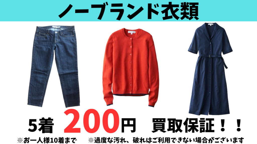 ノーブランド衣類5点で200円の買取保証!